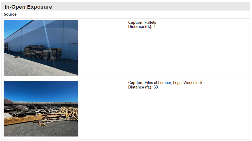 For Truss Co., pallets and piles of lumber, logs, and woodstock were both in close proximity to the building. These external materials elevate exposure risks due to the potential for rapid flame spread. Proper separation and containment of combustible storage are important mitigation steps.