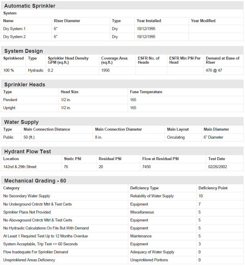 This first section provides a snapshot of the building’s key identifying details and risk factors, essentially the who, what, and where of the property.